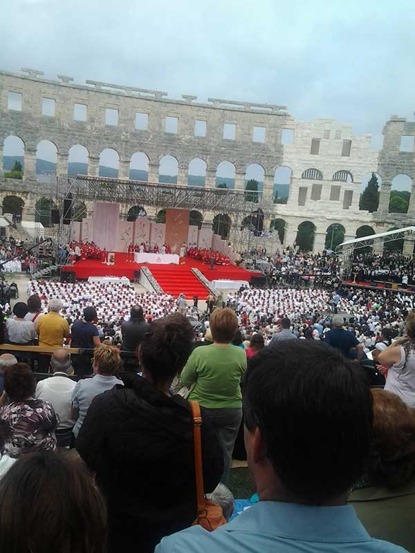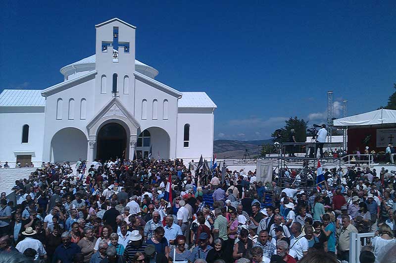 Očekivano, povodom većeg broja hodočasnika, misa se slavila na otvorenom koju je predvodio nadbiskup Nikola Eterović (bliski pomoćnik pape Franje !) . Mladih i starijih svećenika, koji su pozdravljali i blagoslivljali prilazeći oltaru, nije nedostajalo kao ni generala
