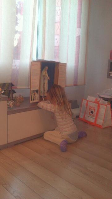 Gledam.... ...dijete - vidim čisto srce, čistu ljubav. ...naklon i sklopljene ručice - vidim ponizno srce. ... isprepletenu krunicu oko prstića, zatvorene oči - vidim predanost i povjerenje. ...usnice koje u tišini izgovaraju Zdravo Marijo - vidim iskreno prijateljstvo s Majkom. ...molitvu u obiteljskom domu - vidim slobodu.